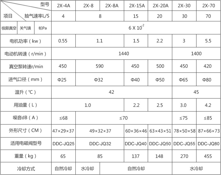 2X系列雙級旋片式真空泵為雙級結構, 它的工作性能由高壓級與低壓級二部分組成,它的吸入口與真空容器或真空設備連接,二三運轉時容器內的氣體將大量吸入與排出。當設備獲得真空時,高壓級排氣閥片將封閉,高壓級吸入的氣體將轉送到第二級,并經第二級吸放與排出,這樣真空設備可獲得了定的真空。 該泵的技術參數為6x10^(-2)pa。 根據用戶使用情況, 可配備真空增壓泵,將該泵做為前級泵,由于增壓泵的軸氣力加強,前級泵連續抽除,能使您的設備獲得更高的真空。